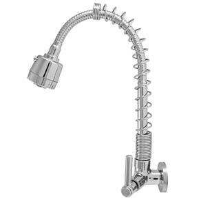 Pressão minima funcionamento: 6,5 mca Especificações: Torneira gourmet parede luxo com mola Material: latão cromado Mecanismo de cerâmica em 1/4 de volta Mola aço inox asi 302 polida a mola é polida, não é cromada e não enferruja O aço inoxidável 302 possui boas propriedades mecânicas e resistência à corrosão. O aço inoxidável 302 é também conhecido como aisi 302. Função da mola: apenas estética. Saída de água: chuveirinho ou jato concentrado Torneira flexível gira em 360 graus Fácil instalação Fixação: parede Itens inclusos: 1 torneira gourmet para cozinha parede luxo com mola 1 canopla Garantia de 1 ano na cromagem e no sistema de vedação. Danos no tubo gourmet a garantia não cobre nunca torcer o tubo gourmet Ean: 7898664074528