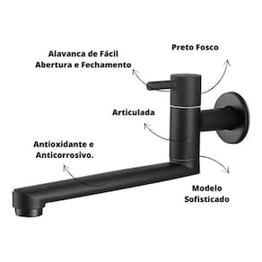 Esta torneira de inox, com acabamento preto, é a escolha perfeita para o seu tanque, jardim ou cozinha. Este modelo, inclui um aerador, que mistura ar com a água, reduzindo o consumo e evitando respingos. A colocação é feita na parede, o que economiza espaço e torna a torneira mais acessível. O material garante durabilidade e resistência, tornando esta torneira uma escolha prática e estilosa para a sua casa.