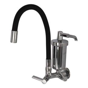 "Adicione uma dose de elegancia e funcionalidade a sua cozinha com a Torneira Parede Cozinha Bica Alta Flex Cromada Equation. Esta torneira de parede se destaca por seu design sofisticado e acabamento cromado, que alem de proporcionar um brilho extra, tambem oferece uma camada adicional de protecao contra corrosao e desgaste. A bica alta flexivel e perfeita para facilitar suas tarefas diarias, permitindo que voce direcione a agua exatamente onde precisa, seja para lavar loucas ou encher panelas.