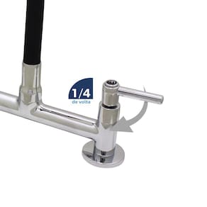 Torneira Pia Cozinha Misturador Gourmet Mesa Flexível Preto Fosco 1/4 VoltaDesenvolvido com material primeira de qualidade, o Misturador para Cozinha água quente e fria é a opção ideal para quem busca um modelo com design tradicional e com muito glamour. O sistema de comando duplo possui dois volantes: um para água quente e outro para água fria. Permitirá que você escolha a temperatura de forma prática e simples, sendo que o usuário controla a vazão de água e controla a mistura de água quente com água fria.Fabricado em latão, possui alta resistência a riscos e corrosões. Além disso, toda a linha luxo possui um design moderno o que a torna um bonito objeto decorativo, trazendo um toque de requinte e sofisticação para sua cozinha. Este misturador possui mecanismo 1/4 de volta cerâmico, que ajuda a reduzir o consumo de água, aumentando a rapidez de abertura e fechamento.Para manutenção e limpeza usar apenas pano macio e sabão neutro. Não usar produtos abrasivos como sapólio, palha de aço e produtos químicos.DADOS TÉCNICOS:- Shophidraulica- Material: Corpo Metal; Volante ABS - Mecanismo : 1/4 de volta- Posição de instalação: Mesa - Bitola: 1/2 - Distância do furo para instalação: 20cm- Pressão Mín.: 4 m.C.A - Pressão Máx.: 40 m.C.A- Vazão Mín.: 4 l/m- Vazão Máx.: 16 l/m - Suporta até 70º C de temperatura- Arejador : Dupla Função- Certificação: PBQP-H- Garantia: 5 anos defeito de fabricação Marca: Shophidraulica