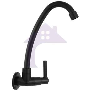Torneira pia cozinha de parede preta all black abs 1/4 de volta