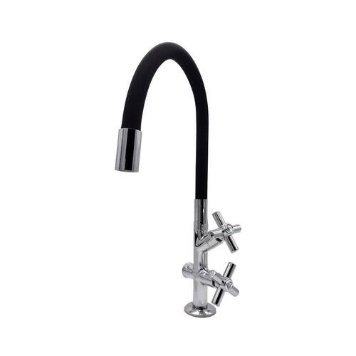 Torneira Pia Mesa e Bancada Tanque Maquina Mangueira Duas Saídas Tudo Flexível Preto 1/4 de Volta Luxo