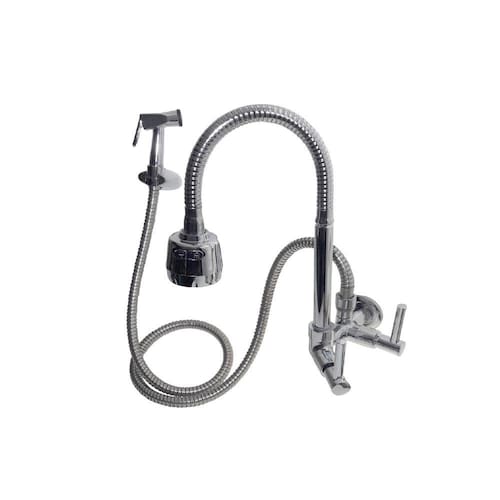 Torneira Bica Móvel Gourmet para Cozinha 1/4 de volta em metal cromado,Tubo flexível ajustável oferecendo maior área de atuação, Arejador com dupla função: jato contínuo ou chuveirinho em ABS cromado de alta resistência,Recomendação mínima de 4 m.c.a. metros coluna d'água para um bom funcionamento, não recomendado para instalação em ponto de caixa d'água,Mecanismo cerâmico ¼ de volta que proporciona economia de água. Tem alta durabilidade e pode ser substituído se necessário,Instalação em parede, Prática na hora de limpar a pia toda proporcionando higienização total da área de trabalho ou para encher as panelas,Modelo C34 alavanca,Bitola de 1/2 com bucha adaptável de 3/4,Ducha flexível com 1,20 m de comprimento,Gatilho em metal,Produto multiuso indicado para cozinhas, bares, restaurantes, churrasqueira, espaço gourmet, etc
