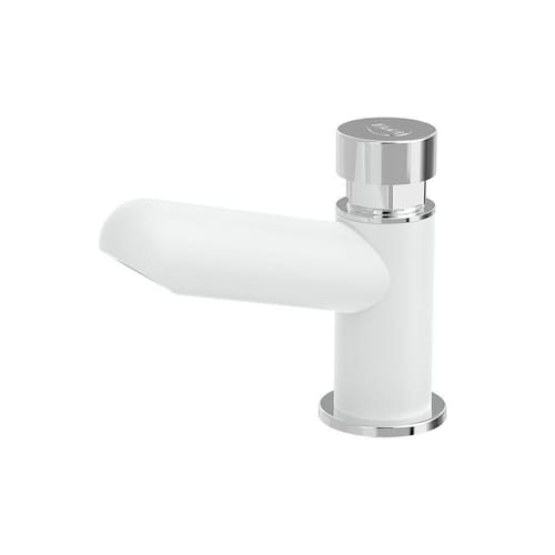 Torneira Plástica Com Fechamento Automático Blukit De Bancada Branca Tempo de Ciclo: 4 - 10 segundos; Dimensões AxLxP (mm): 103x34x132; Cor: Branco / Cromado; Material: ABS; Garantia: 1 ano junto ao fabricante; Referência: 190222; Composição: Plásticos de engenharia, aço inoxidável e elastômeros; Tipo: Torneira com Fechamento Automático; Altura Bica: Baixa; Local de Uso: Bancada; Conexão de Entrada: 1/2; Mobilidade Bica: Fixa; Itens Inclusos: 1 Torneira com Fechamento Automático
