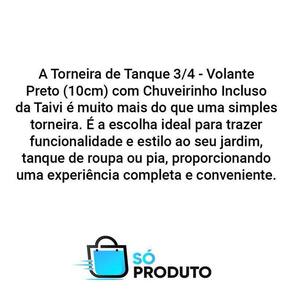A Torneira de Tanque 3/4 - Volante Preto (10cm) com Chuveirinho Incluso da Taivi é muito mais do que uma simples torneira. É a escolha ideal para trazer funcionalidade e estilo ao seu jardim, tanque de roupa ou pia, proporcionando uma experiência completa e conveniente. Com a capacidade de fornecer água quente e fria, essa torneira versátil se adapta perfeitamente às suas necessidades diárias, tornando-se um elemento indispensável em sua rotina.