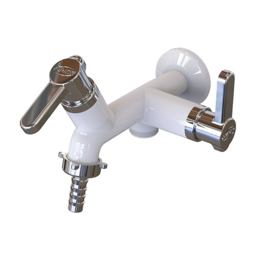 💧 MODELO E VARIAÇÕES Cor: Branco | Branco C/cromado | Cromado - (ESCOLHER NO ANÚNCIO) Bica: Dupla – 2 Saídas Linha: Berlim Fixação: De parede Abertura: 1/4” Uso: Tanque / Máquina de lavar