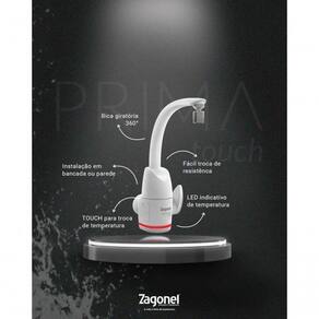 Torneira Zagonel Prima Eletronica 5500 W - 220v Branca se destaca pela tecnologia touch para controle de temperatura, bica giratória 360 e ajuste de temperatura progressivo, ideal para instalação em parede ou bancada. Possui painel digital, LED indicador de temperatura e arejador que evita respingos. A instalação requer fiação mínima de 4 mm e disjuntor de 32A para garantir segurança e eficiência. Ean: 7897273228971