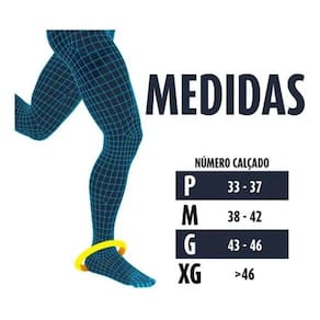 Tamanhos de acordo com o calçado: 33 ao 37; 38 ao 42, 43 ao 46 e +46.