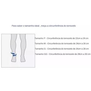 - Tamanho GG: Circunferência do Tornozelo: de 28 cm a 30 cm.