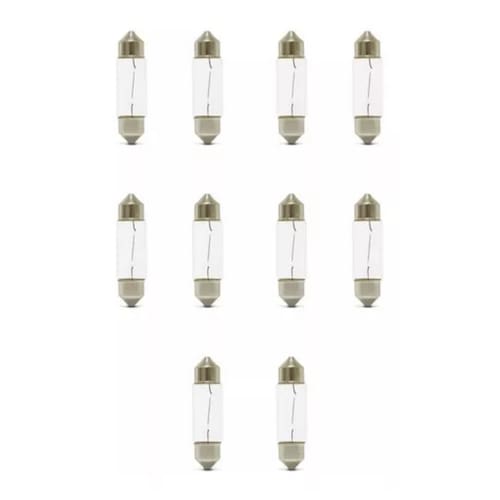 Kit 10 Lâmpadas Halógenas Transparentes Torpedo C5W 3200K 5W 12V