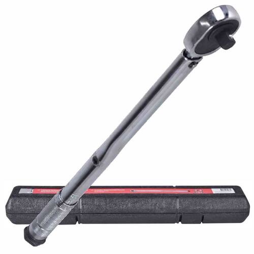 O Torquímetro de Estalo da marca MTX possui encaixe de 1/2" e sua escala de aperto varia de 42 a 210 Nm com divisão da escala de 0,35 Nm, seu torque é ajustado através de uma trava localizada no cabo.