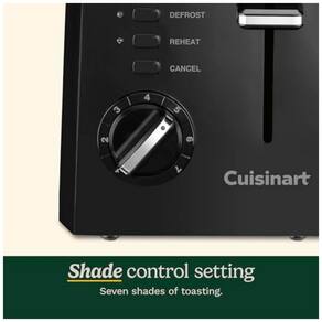 Assuma o controle de sua torrada com a torradeira compacta de plástico de 2 fatias Cuisinart, que oferece sete tons de torrada. Esta torradeira compacta economiza espaço, seja colocada lateralmente ou voltada para frente para caber em qualquer balcão de cozinha ou até mesmo em dormitório. Quer você queira um bagel grosso torrado para fazer um lanche, tortas ou pão em fatias finas para uma torção em croutons, as aberturas largas e o carrinho de alta elevação tornam no sempre fácil de torrar