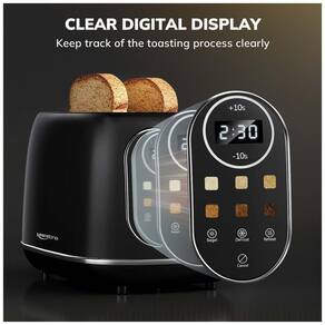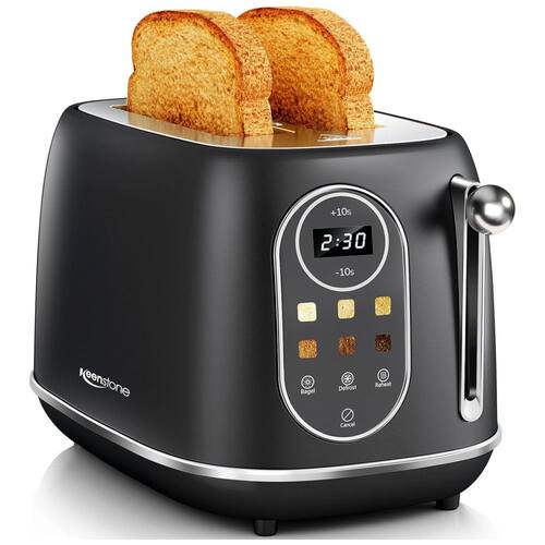Torradeira Keenstone com tela sensível ao toque, 6 níveis de tostagem, funções Bagel, Descongelar, Reaquecer e Cancelar, design em aço inoxidável com toque retrô.Permite ejeção manual