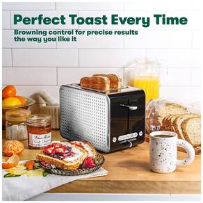 Torradeira com tela digital, abertura extra larga, funções de reaquecimento, descongelamento, cancelamento e sem glúten, controle de temperatura, guias de centralização automática, sistema antijam e desligamento automático.Permite ejeção manual
