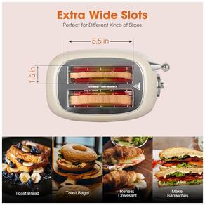 Torradeira Crownful WT 330D com 4 fatias, 900W, funções de bagel, cancelar e descongelar, fendas extra largas de 1,5 pol., ajuste de reaquecimento e 6 níveis de tostagem, bandeja de migalhas removível e tampa para slots.Permite ejeção manual