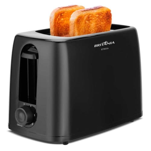 Torradeira Britânia BTR05A com 6 níveis de tostagem, capacidade para 2 fatias de pão, base antiderrapante e design em metal e plástico.Permite ejeção manual