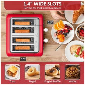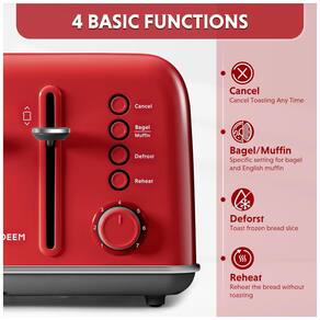 Torradeira BUYDEEM DT640 para 4 fatias com função bagel, 7 configurações de tostagem, slots extra largos, design retro e painel de controle independente.Permite ejeção manual