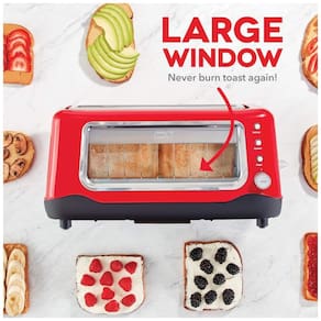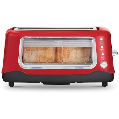 Torradeira DASH com slots extra largos, função bagel, bandeja de migalhas removível e seletor de tonalidade ajustável.Permite ejeção manual
