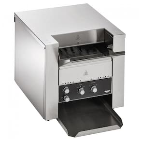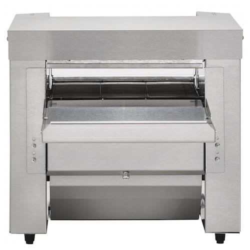 Torradeira de esteira conversível com elementos de aquecimento de quartzo, cozimento rápido e uniforme por convecção forçada, esteira com sistema de acionamento livre de manutenção, modo de espera para redução de consumo de energia, controles de velocidade variável, calor superior e inferior, abertura ajustável de 1-2-3, capacidade de torrar até 300 fatias por hora.Permite ejeção manual