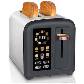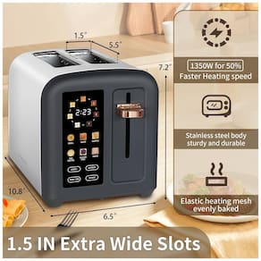 Torradeira Elétrica com tela LCD, controle de toque colorido e 7 níveis de tostagem. Atinge até 1350W, proporcionando torragem rápida e eficiente.