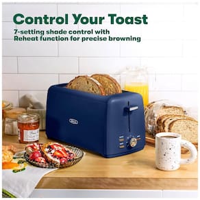 Torradeira elétrica BELLA com 4 fatias, 7 níveis de tostagem, desligamento automático, bandeja de migalhas removível, e zenamento de cabos integrado.Permite ejeção manual