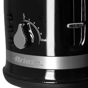 A Torradeira Elétrica Ariete é própria para 2 fatias de diferentes tipos de pães, com 6 níveis de tostagem, conta com potência de 750W. Apresenta um design refinado, com linhas harmoniosas, que contribui com a decoração da sua cozinha. A torradeira é equipada com um suporte de pinça que torra perfeitamente o pão, com ejeção automática.