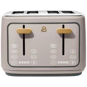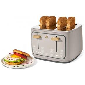 Torradeira elétrica de 4 fatias com ranhuras extra largas autoajustáveis, 7 níveis de tostagem, funções para descongelar, aquecer e ajustar tostagem. Corpo em aço com acabamento fosco, alavanca de elevação alta, bandeja de migalhas removível e organizador de cabo.Permite ejeção manual