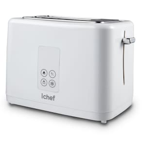 Torradeira elétrica Ichef Breakfast com capacidade para 2 fatias, 7 níveis de tostagem, funções reaquecer, descongelar e cancelar, design moderno com decoração prateada UV e display de LED.Permite ejeção manual