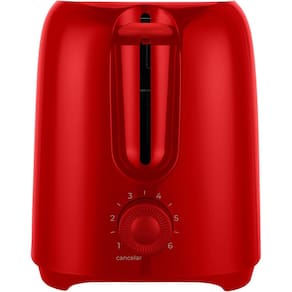 Torradeira Elétrica Kian TO-100 Vermelha 220V com potência de 750W, 6 níveis de tostagem, botão cancelar iluminado e bandeja removível para migalhas.Permite ejeção manual
