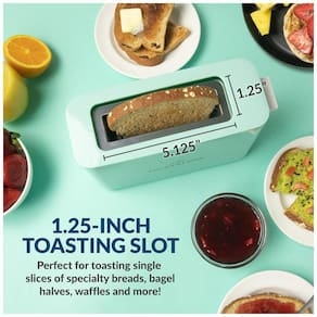 Torradeira Eletroca Retrô My Mini, 1 fatia, com controle de temperatura e função descongelar, ideal para fatias grossas de pão, muffins, bagels e waffles.