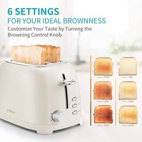 Are you always rushing out in the morning for work and have no time to make your breakfast? Are you looking for a more efficient way to make delicious breakfast for yourself or your family? Then you may need a high-quality toaster 2 slice wide slot. Now get the attractive retro toaster or vintage toaster to brighten up your kitchen. Why Choose Ultrean 2-Slice Bread Toaster 6 Browning Settings Perfectly suit your needs of preferred tastes. 6 levels of browning enable to toast the bread from light to dark. By setting level 1-2, you will get light brown color; with level 3-4, it’s medium; with level 5-6, it will turn out dark. Simply turn the browning control knob to your desired level and enjoy your nicely toasted breakfast. Multiple Functions for Different Needs There are 3 functions for choice. Bagel, defrost, and cancel. Pick the bagel toaster for toasting one side only, defrost for toasting for frozen bread or frozen waffles, cancel mode to immediately stop the operation. Removable Crumb Tray Features removable crumb tray, which can collect the bread crumbs at the bottom and prevent the crumbs from messing up your kitchen. Easy to pull out and clean up. Easy-to-store Power Code Simply wrap the power code under the bottom for easy and tiny storage. Specifications: Model Number: WT-330C Rated Voltage: 120V, 60Hz Rated Power: 825W Net Weight: 3.1 lbs / 1.4 kg Dimensions11.8 x 7.1 x 7.6 in / 30 x 18 x 19.2 cm
