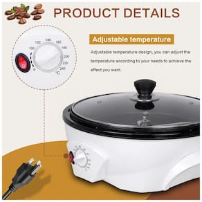 Grande capacidade: O torrador de grãos de café está equipado com uma bandeja para assar, que pode torrar 300 500g de grãos de café por vez. uso doméstico. Preferência do barista: 0 240 0 464 temperatura ajustável, adequada para amantes de café torrados escuros e torrados claros, acredito que este será um presente feliz. Multiuso: Este torrador de grãos de café pode ser não apenas para torrar diferentes quantidades de grãos de café, mas também para assar pipoca, amendoim, soja, sementes de girassol, frutas secas e outros grãos. Observe a qualquer momento: Existem 4 orifícios de ventilação na tampa transparente, que podem observar o estado dos grãos de café a qualquer momento e registrar as alterações dos grãos de café. A tampa de vidro é forte e resistente ao calor e tem grande usabilidade. Aquecer uniformemente: Há uma vareta de agitação na assadeira, que é constantemente mexida durante o processo de cozimento, para que os grãos sejam aquecidos de maneira mais uniforme. A assadeira adota tinta antiaderente de qualidade alimentar, que é segura de usar e fácil de limpar Marca: Não Informado