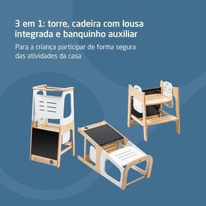 Especificações Técnicas Material: Madeira natural de alta qualidade Modos de Uso: Torre de aprendizado, cadeira com lousa, banquinho auxiliar Altura Ajustável: Sim Peso Suportado: Até 50 kg Dimensões: 90 x 40 x 50 cm Peso do Produto: 6 kg Certificações: Normas de segurança ABNT Garantia do Fornecedor: 12 meses
