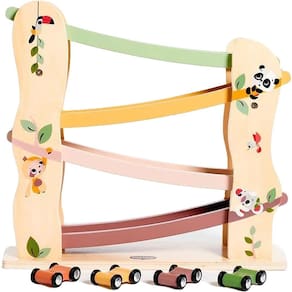 Seus 4 carros de rápida rolagem, deslizam pela rampa, dando aos pequenos algumas informações sobre as maravilhas da gravidade e do movimento. Parte da coleção Boho Chic, ela conta com cores suaves e design inspirado na natureza, Seja brincando de forma independente ou com irmãos ou pais, a Torre de Carros de Madeira oferece a mistura ideal de diversão e desenvolvimento.