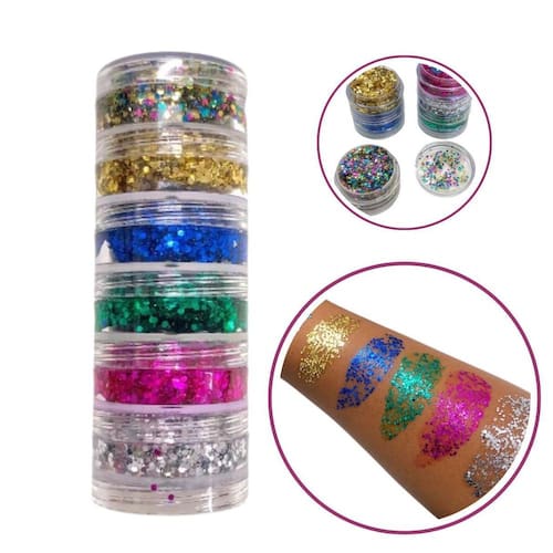 Torre de Gliter Confete em Gel Maquiagem Artistica Festa Torre Glitter de Gel Confete Magia com 06 Cores de 5g cada, sendo: - 01 Dourado; - 01 Azul; - 01 Verde; - 01 Rosa; - 01 Prata; - 01 todas cores misturadas . Proporcionando uma variedade de opções para criar looks deslumbrantes. Tampa de Rosca: Prático e fácil de usar, com tampa de rosca para garantir a durabilidade do produto. Pigmentação Impecável e Duradoura: Aplique com confiança, sabendo que a pigmentação se destaca e permanece vívida ao longo do tempo. Ideal para o Carnaval e outras festividades, a Torre Glitter de Gel Confete Magia é a escolha perfeita para adicionar um toque mágico ao seu visual festivo As Cores Podem Variar de Acordo com As Configurações do Seu Monitor e Podem Sofrer Variação de Cor ou Padrão de Acordo com o Seu Lote. Imagem ilustrativa. Marca: Não Informado