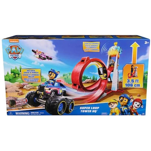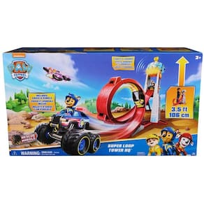 Prenda Chase no banco do motorista e coloque-o no topo da rampa, em seguida, empurre a alavanca para lançar Chase pela rampa e ao redor do loop gigante para resgates emocionantes!