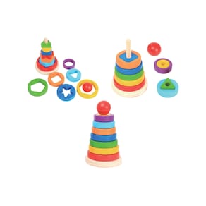Brinquedo feito de madeira de reflorestamento, possui uma superfície lisa, bordas arredondadas e tinta atóxica, garantindo durabilidade e segurança para as crianças. Deixe a imaginação fluir e a aventura correr solta com seus filhos estimulando também o aprendizado e desenvolvimento as crianças.Com anéis coloridos de diferentes tamanhos e formas geométricas, as crianças podem desenvolver habilidades motoras finas, coordenação, raciocínio lógico, interpretação e percepção para empilhar e encaixar as peças