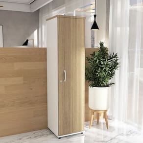 Seu design clean combina facilmente com diferentes mobílias, mantendo a harmonia da decoração. Ideal para o dia a dia de trabalho, é perfeito para deixar seu ambiente organizado, funcional e elegante. Acabamento da Porta: BP Acabamento da Prateleira: BP Ambiente Principal: Escritório Armário Suspenso: Não Complexidade da Montagem: Média: pode ser montado por mais de uma pessoa e/ou necessite de maior conhecimento para montagem Cor: Branco/Noce Naturalle Cor do Produto: Branco/Noce Naturalle Cor Interna: Branco/Noce Naturalle Escala de Brilho: Semi-Fosco Escala de Brilho da Porta: Semi-Fosco Escala de Brilho da Prateleira: Semi-Fosco Formato do Armário: Retangular Itens Inclusos: 1 Armário Manual de Montagem e Instalação: https://product-hub-prd.madeiramadeira.com.br/970653/documents/b420d7a7-77e4-4c5a-b481-6b973f931a5408451732543125970653140259.pdf Marca: Pandin Móveis Material da Porta: MDP Material da Prateleira: MDP Material dos Pés: Polipropileno Material Principal: MDP Necessita Montagem: Sim Orientação do Armário: Vertical Origem do Produto: Nacional Peso: 24,3 kg Peso Máximo por Prateleira: 15 kg Possui Espelho: Não Possui Mesa Retrátil: Não Possui Pés: 04 Possui Portas: 01 Possui Prateleiras: 03 Quantidade de Armários: 1 Recomendações de Uso, Manutenção e Limpeza: Limpeza feita com um pano levemente umedecido e um pano seco. Sapatas Niveladoras: Sim Sistema de Montagem: Parafuso Suporta Até (kg): 30 kg Tamanho do Armário: Alto (Acima de 150cm) Tipo de Armário: Totalmente Fechado Tipo de Dobradiça/Corrediça da Porta: Alumínio Tipo de Puxador da Porta: Externo Marca: Não Informado