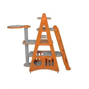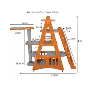 Mantém os felinos ativos, estimulando-os ao exercício, reduzindo o estress e o tédio e conta com diversas opções de brincadeira.Confeccinada toda de encaixe, possui 5 andares, bordas arredondadas, toda com carpete próprio para ser ; na cor cinza claro que disfarça os pelos, possui rede de tecido suede e rampa para a diversão de gatinhos.
