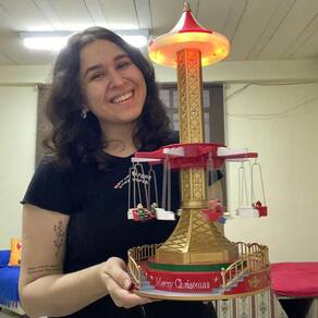 A Torre possui movimento sobe e desce, o carrossel fica girando, luzes coloridas piscam e ainda possui músicas natalinas.