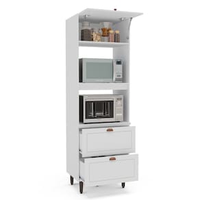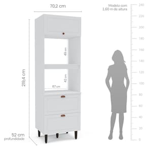 A Torre Quente / Paneleiro possui portas em MDF usinado em baixo relevo para deixar sua casa com muito estilo. Possui puxadores na cor cobre em formato de concha para as gavetas e corrediças telescópicas garantindo uma melhor abertura suportando até 10Kg. Sua porta basculante possui dobradiças e pistão para uma abertura ampla, além de puxador pontual trazendo leveza e elegância. Com 219,4 cm de altura, 70,2 cm de largura e 52 cm de profundidade é possível armazenar todos seus itens essenciais. Seus nichos suportam 25kg garantindo segurança e praticidade no seu dia a dia. Acabamento da Gaveta: Pintura UV Acabamento da Porta: Pintura UV Acabamento da Prateleira: Pintura UV Acabamento dos Pés: Poliéster Altura dos Pés: 17 cm Ambiente Principal: Cozinha Complexidade da Montagem: Média: pode ser montado por mais de uma pessoa e/ou necessite de maior conhecimento para montagem Cor: Branco Cor do Produto: Branco Cor dos Pés: Imbuia Cor Flex: Não Cor Interna: Branco Escala de Brilho: Brilhante Escala de Brilho da Gaveta: Brilhante Escala de Brilho da Porta: Brilhante Escala de Brilho da Prateleira: Fosco Gaveta com Chave: Não Informações Complementares: Até 10 kg sobre as prateleiras dos armários / Até 25 kg sobre a base e a prateleira do nicho Itens Inclusos: 1 móvel desmontado, kit de ferragens, termo de garantia e manual de montagem. Manual de Montagem e Instalação: https://product-hub-prd.madeiramadeira.com.br/934888/documents/d4a854f8-65ab-4afc-be4a-edd3a608f9af2253521493317246767423977.pdf Material da Dobradiça/Corrediça da Porta: Metálica Material da Gaveta: MDF Material da Porta: MDF Material da Prateleira: MDP Material do Puxador da Gaveta: Plástico Material do Puxador da Porta: Plástico Material dos Pés: Plástico Montagem Flex: Não Necessita Montagem: Sim Origem do Produto: Nacional Pés Reguláveis: Sim Peso: 53,09 kg Peso Máximo por Gaveta: 10 kg Peso Máximo por Prateleira: 25 kg Possui Espelho: Não Possui Possui Pés: 05 Possui Portas: 01 Possui Prateleiras: 01 Possui Rodízio: Não Recomendações de Uso, Manutenção e Limpeza: Utilize um pano macio umedecido com água e sabão neutro, seguido de pano seco. Não utilize produtos químicos ou abrasivos para limpeza, pois estes danificam o revestimento do móvel. Sapatas Niveladoras: Sim Sistema de Montagem: Cavilha, parafuso, minifix e prego Tipo de Corrediça da Gaveta: Telescópica Tipo de Dobradiça/Corrediça da Porta: 35 mm Tipo de Puxador da Gaveta: Externo Tipo de Puxador da Porta: Externo