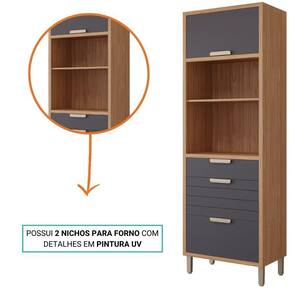 Torre Quente 100%Mdf 70Cm 2 Nichos Para Forno 2 Portas E 2 Gavetas Eloise Mgm Móveis Freijó/Titanium