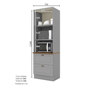 - Espaço para acomodar micro-ondas 38x68x53 cm