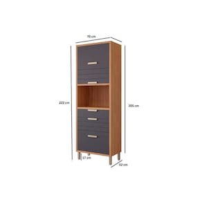 Torre Quente De Cozinha Paneleiro Eloise C/ 3 Portas Basculantes Riscadas 1 Nicho P/ Forno E 2 Gavetas 70 Cm Freijo/titanium - Mgm