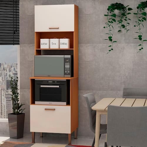 Espaço Amplo: Design inteligente que acomoda forno e micro-ondas, otimizando sua cozinha.