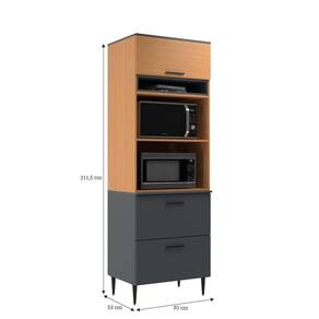 O Kit Forno/Micro é ideal para acondicionar e organizar objetos, indicado para compor ambientes em sua cozinha. Possui puxadores de Aluminio na cor Preto com As Ponteiras Cromadas, pés reguláveis, dobradiças metálicas e nichos com suporte para forno e micro-ondas. Produto em MDP com acabamento em Pintura UV. Possui 3 portas Basculantes com fechamento com Pistão à Gás Acabamento da Porta: Pintura UV Acabamento da Prateleira: Pintura UV Acabamento dos Pés: Polipropileno Altura dos Pés: 17 cm Ambiente Principal: Cozinha Complexidade da Montagem: Média: pode ser montado por mais de uma pessoa e/ou necessite de maior conhecimento para montagem Cor: Angelin/Grafite Cor do Produto: Angelin/Grafite Cor dos Pés: Preto Cor Flex: Não Cor Interna: Angelin Escala de Brilho: Fosco Escala de Brilho da Porta: Fosco Escala de Brilho da Prateleira: Fosco Itens Inclusos: 1 Paneleiro, Manual de montagem e Kit Ferragens Linha ou Coleção: Barbara Manual de Montagem e Instalação: https://cdn2.madeiramadeira.com.br/atributo/moveis-sul/1280693-manual-5341-angelin-grafite.pdf Material da Dobradiça/Corrediça da Porta: Aço Material da Porta: MDP Material da Prateleira: MDP Material do Puxador da Porta: Alumínio Material dos Pés: Plástico Montagem Flex: Não Necessita Montagem: Sim Origem do Produto: Nacional Pés Reguláveis: Sim Peso: 59,15 kg Peso Máximo por Prateleira: 5 kg Possui Espelho: Não Possui Possui Pés: 04 Possui Portas: 03 Possui Prateleiras: 01 Possui Rodízio: Não Recomendações de Uso, Manutenção e Limpeza: Para limpeza utilize pano macio, seco ou ligeiramente umedecido com água. Não utilize sapólios, polidores e ou produtos que contenham carga abrasiva, para evitar danos ao produto. Evitar que o móvel fique exposto a luz solar direta, ou em ambientes de umidade e calor excessivo. Não colocar carga excessiva de peso nas gavetas e prateleiras, para evitar acidentes ou danos ao produto. O móvel deverá ficar nivelado, desta forma, as gavetas e as portas terão o bom funcionamento, evite arrastá-los, isso pode danificar o móvel. Sapatas Niveladoras: Não Sistema de Montagem: Cavilhas, parafusos e cola Tipo de Dobradiça/Corrediça da Porta: Simples Tipo de Puxador da Porta: Externo