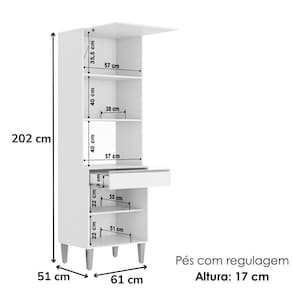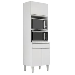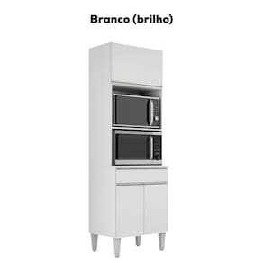 Torre Quente Andreia, desenvolvida para oferecer praticidade e elegância à sua cozinha. Produzida em MDP 12/15 mm (fundo 3 mm) com acabamento em pintura UV. Possui portas com dobradiças metálicas (sendo a superior basculante com pistão a gás), gaveta com corrediça metálica, prateleira interna e espaço para forno e/ou micro-ondas. Conta ainda com puxadores em alumínio e pés plásticos com regulagem (altura de 17 cm). Produto entregue em 02 volumes.