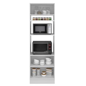 Possui dois espaços para forno ou micro-ondas de 47 cm x 67 cm com abertura para saída do calor. Os pés são em PVC com regulagem de altura e rodapé removível em MDP de fácil encaixe.