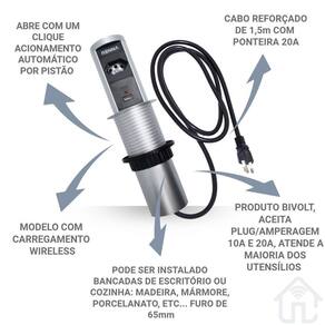 Torre de tomada automática 1 tomada + 2 usb+ carregamento wireless no topo