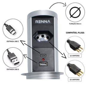 Compatível com todas as tomadas brasileiras de 10a e 20a.